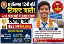 छत्तीसगढ़ 12वीं बोर्ड रिजल्ट जारी: जिज्ञासु वर्मा बने टॉपर, 98.69% अंक के साथ प्रदेश में पहला स्थान हासिल