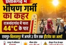 छत्तीसगढ़ में भीषण गर्मी का कहर: राजनांदगांव में पारा 44°C के पार, रायपुर-बिलासपुर में अगले 2 दिन तक हीटवेव का अलर्ट