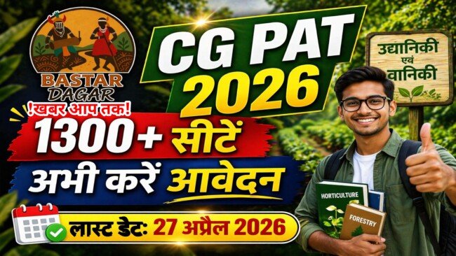 इन पाठ्यक्रमों में प्रवेश छत्तीसगढ़ व्यावसायिक परीक्षा मंडल (व्यापम) द्वारा आयोजित प्री एग्रीकल्चर टेस्ट (PAT) 2026 में प्राप्त अंकों के आधार पर पूरी तरह मेरिट के जरिए किया जाएगा।