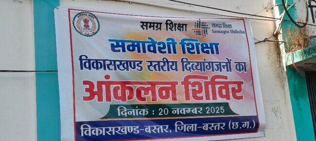 बस्तर, 20 नवंबर 2025: विकासखंड बस्तर में समावेशी शिक्षा के अंतर्गत दिव्यांग छात्रों के लिए विशेष आकलन शिविर आयोजित किया गया, जो छात्रों और उनके अभिभावकों के लिए वरदान साबित हुआ। इस शिविर में कक्षा 1 से 12वीं तक पढ़ रहे 82 दिव्यांग छात्रों का परीक्षण कर उन्हें दिव्यांग प्रमाण पत्र जारी किया गया।