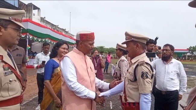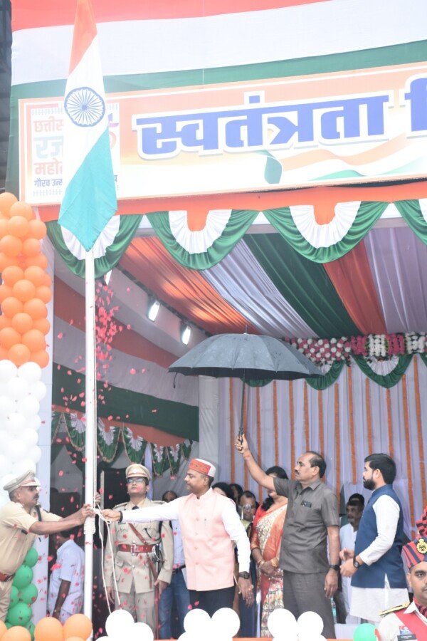 बरसते पानी में भी तिरंगे के रंग में रंगा बालोद, वन मंत्री केदार कश्यप ने किया ध्वजवंदन, परेड की सलामी और बलिदानी परिवारों का सम्मान