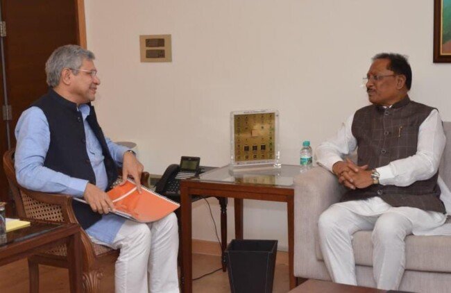 ब्रेकिंग न्यूज़: दिल्ली में मुख्यमंत्री विष्णुदेव साय की रेल मंत्री अश्विनी वैष्णव से मुलाक़ात—छत्तीसगढ़ में रेल विकास को मिलेगी नई रफ्तार