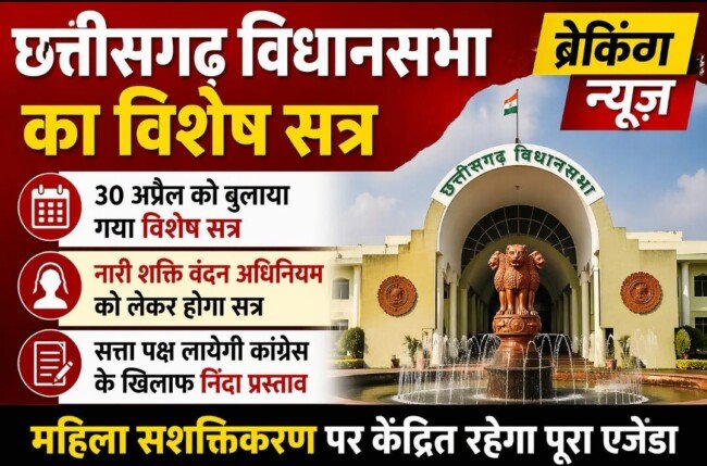 BREAKING NEWS : छत्तीसगढ़ विधानसभा में 30 अप्रैल को विशेष सत्र, नारी शक्ति वंदन अधिनियम पर होगी बड़ी चर्चा