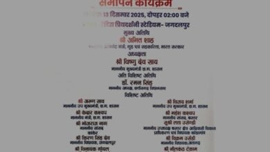 “सांसद खेल महोत्सव का गरिमामय समापन” जगदलपुर, 25 दिसम्बर 2025/स्थानीय धरमपुरा स्थित क्रीड़ा परिसर में आयोजित सांसद खेल महोत्सव का…