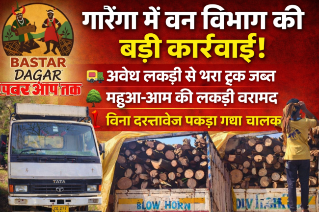 जगदलपुर, 8 अप्रैल 2026: बस्तर संभाग में अवैध लकड़ी तस्करी पर वन विभाग ने कड़ा प्रहार किया। करपावंड वन परिक्षेत्र की टीम ने ग्राम गारेंगा के बाजार चौक पर मंगलवार 7 अप्रैल को वाहन चेकिंग के दौरान आम और महुआ की अवैध लकड़ी से भरा ट्रक टाटा 1109 (CG27 G 0144) जब्त किया।