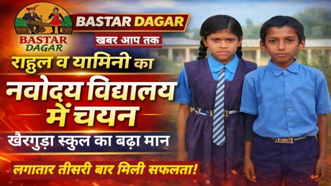 बस्तर। बस्तर विकासखंड के कुंडगुड़ा संकुल अंतर्गत प्राथमिक शाला खैरगुड़ा के दो प्रतिभाशाली छात्रों राहुल और यामिनी का चयन नवोदय विद्यालय में हुआ है। इस उपलब्धि से विद्यालय परिवार के साथ-साथ पूरे क्षेत्र में खुशी का माहौल है।
