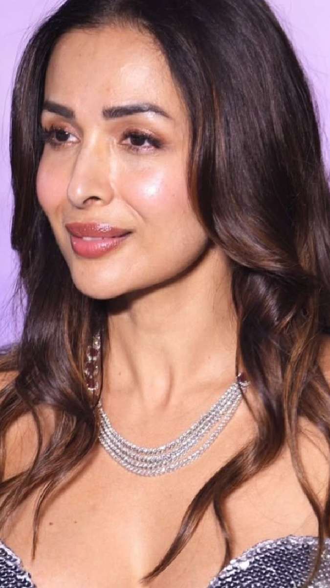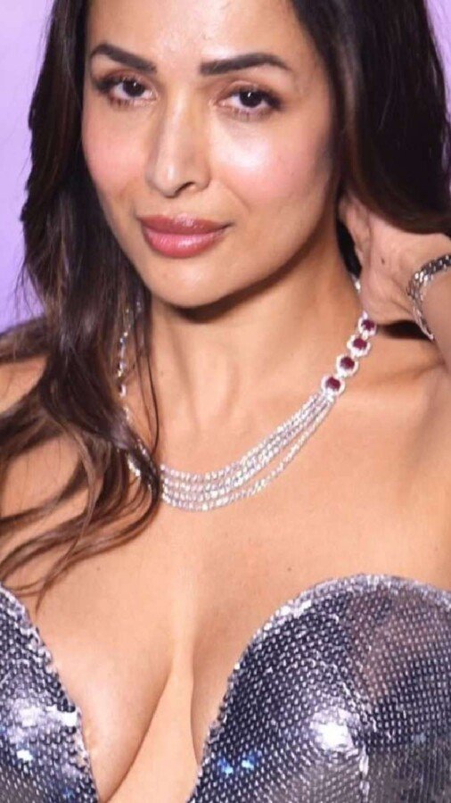 रिसेप्शन पार्टी में मलाइका सिल्वर सीक्विन की स्ट्रैपलेस डीप नेकलाइन ड्रेस में नजर आईं, जिसमें उनका ग्लैमरस अंदाज साफ दिखाई दिया। उन्होंने अपने लुक को डायमंड नेकलेस, वेवी हेयरस्टाइल और ब्लैक हैंड पर्स के साथ पूरा किया। न्यूड मेकअप में उनका चार्म और भी निखरकर सामने आया।