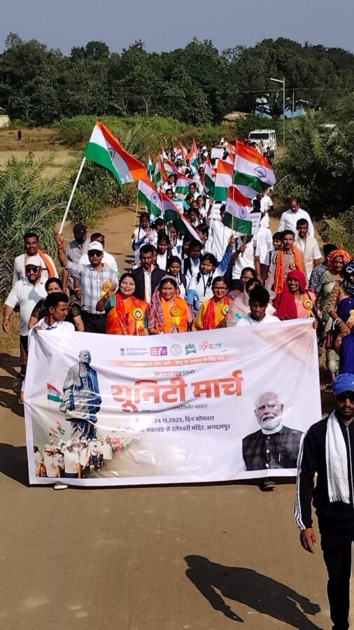सरदार पटेल की 150वीं जयंती पर भाजपा की एकता पदयात्रा : कारीत गाँव से शुरू होकर मां दंतेश्वरी मंदिर के समक्ष संपन्न