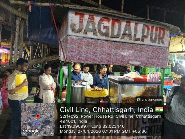 जगदलपुर, 28 अप्रैल 2026। राज्य शासन के निर्देश पर “सही दवा-शुद्ध आहार-यही छत्तीसगढ़ का आधार” थीम के तहत 15 दिवसीय सघन जांच अभियान की शुरुआत हो गई है। 27 अप्रैल से 11 मई तक चलने वाले इस अभियान के पहले दिन ही खाद्य एवं औषधि विभाग ने शहर में कार्रवाई करते हुए चाट-गुपचुप सेंटरों और कॉस्मेटिक्स दुकानों का निरीक्षण किया।
