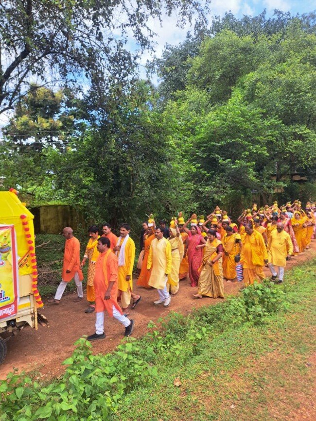 सुबह से ही गांव में पर्व जैसा माहौल देखने को मिला। पारंपरिक वेशभूषा में ग्रामीणजन कलश यात्रा में शामिल हुए। यह यात्रा शिशु मंदिर से प्रारंभ होकर कल्याण आश्रम तक निकली। मार्ग में श्रद्धालुओं ने पूजा-अर्चना और स्वागत कर माहौल को भक्तिमय बना दिया। शोभायात्रा में राधा-कृष्ण की आकर्षक झांकियों ने सभी का मन मोह लिया, जबकि “हरे कृष्णा-हरे रामा” और “राधे-राधे” के जयकारों से वातावरण गूंज उठा।