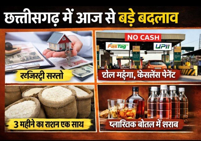 आज से बदल गई आपकी जेब की गणित: छत्तीसगढ़ में रजिस्ट्री सस्ती, टोल महंगा, कैश बंद; 3 महीने का राशन और नई शराब नीति लागू