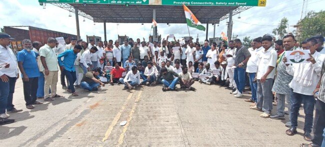 “बढ़ईगुड़ा टोल नाके पर अवैध वसूली के खिलाफ कांग्रेस का प्रदर्शन”