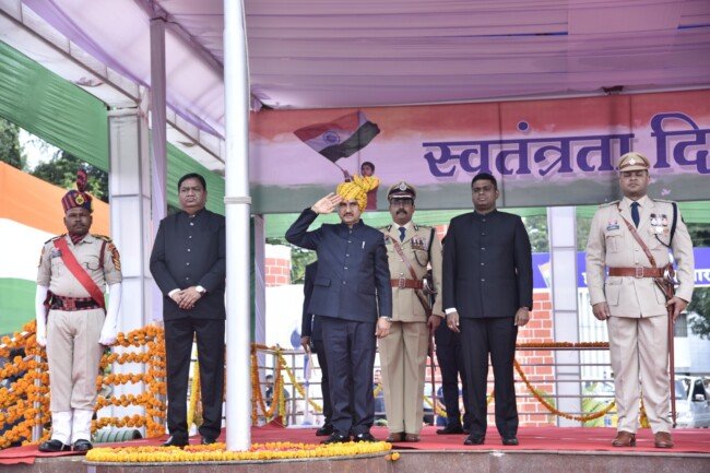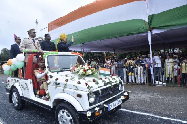बस्तर में 79वां स्वतंत्रता दिवस धूमधाम से मनाया गया: केंद्रीय मंत्री तोखन साहू ने लालबाग मैदान में ध्वजारोहण कर ली परेड की सलामी, शहीद परिवारों और वीर जवानों को किया सम्मानित