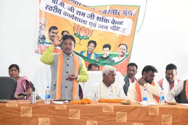 जगदलपुर। बस्तर जिले के भाटागुड़ा, बालीकोंटा एवं धनपूंजी ग्रामों में वीबी जीराम जी जनचौपाल कार्यक्रम का आयोजन किया गया। कार्यक्रम में बस्तर सांसद महेश कश्यप मुख्य अतिथि के रूप में उपस्थित रहे। जनचौपाल के दौरान सांसद ने ग्रामीणों से सीधा संवाद स्थापित कर उनकी समस्याओं, सुझावों और आवश्यकताओं को गंभीरता से सुना।